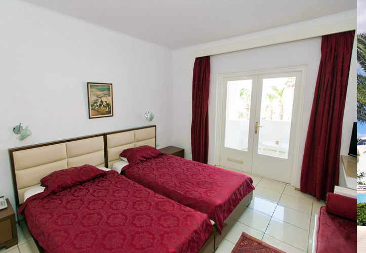 L'hôtel est composé de 195 chambres. Elles sont réparties sur divers pavillons disséminés au milieu d’un parc de 2 hectares. Les chambres sont spacieuses avec vue sur les jardins et piscines. Elles sont meublées de lits doubles ou jumeaux dans une ambiance raffinée et élégante et disposent d’une salle de bain avec douche ou bain, toilettes et petite terrasse ou balcon. Il y a également possibilité d’accueillir 3 et 4 personnes par chambre.