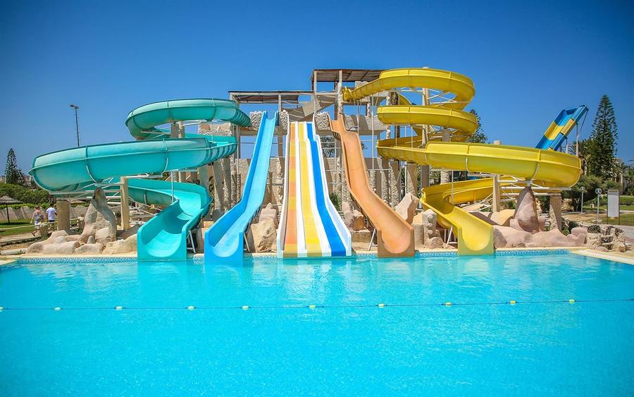 Un aquapark situé au milieu de l’hôtel entièrement rénové, muni d’une piscine énorme d’eau de mer de 2.200 m2 plan d’eau, ainsi qu’un grand toboggan.